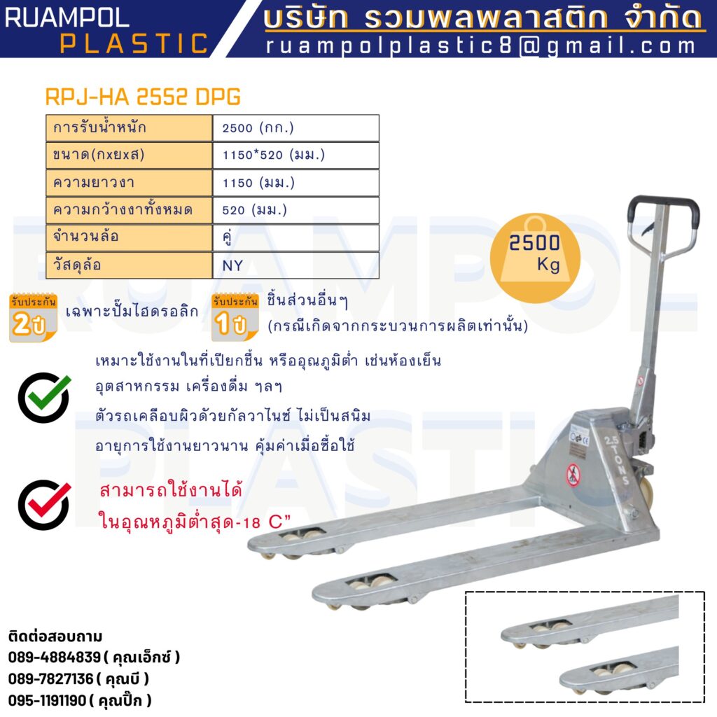 รถลากพาเลท รุ่น DPG (Galvanized Coating) ถูกพัฒนาขึ้นเพื่อการใช้งานในสถานที่ที่มีความชื้นสูงหรืออุณหภูมิต่ำเป็นพิเศษ เช่น: